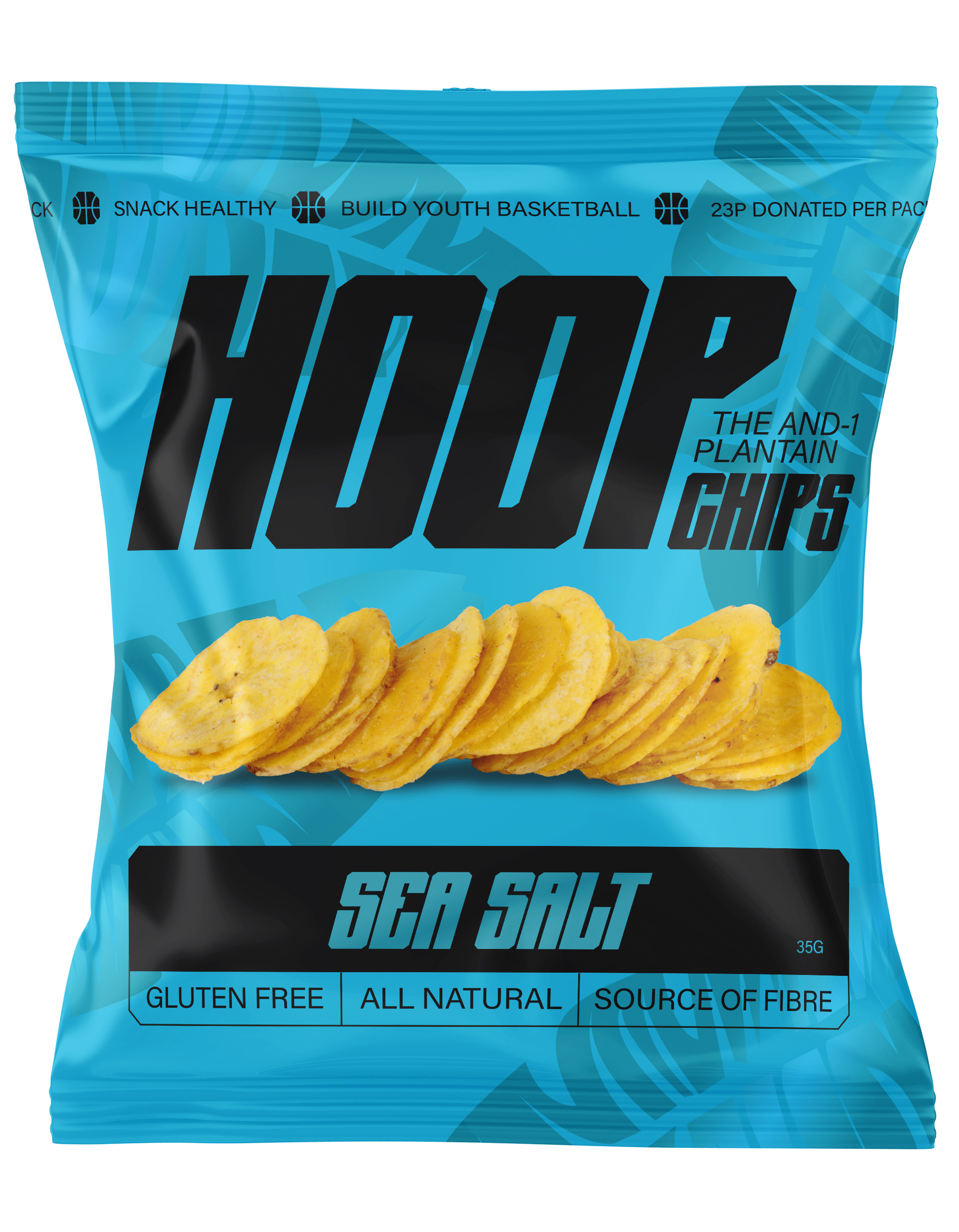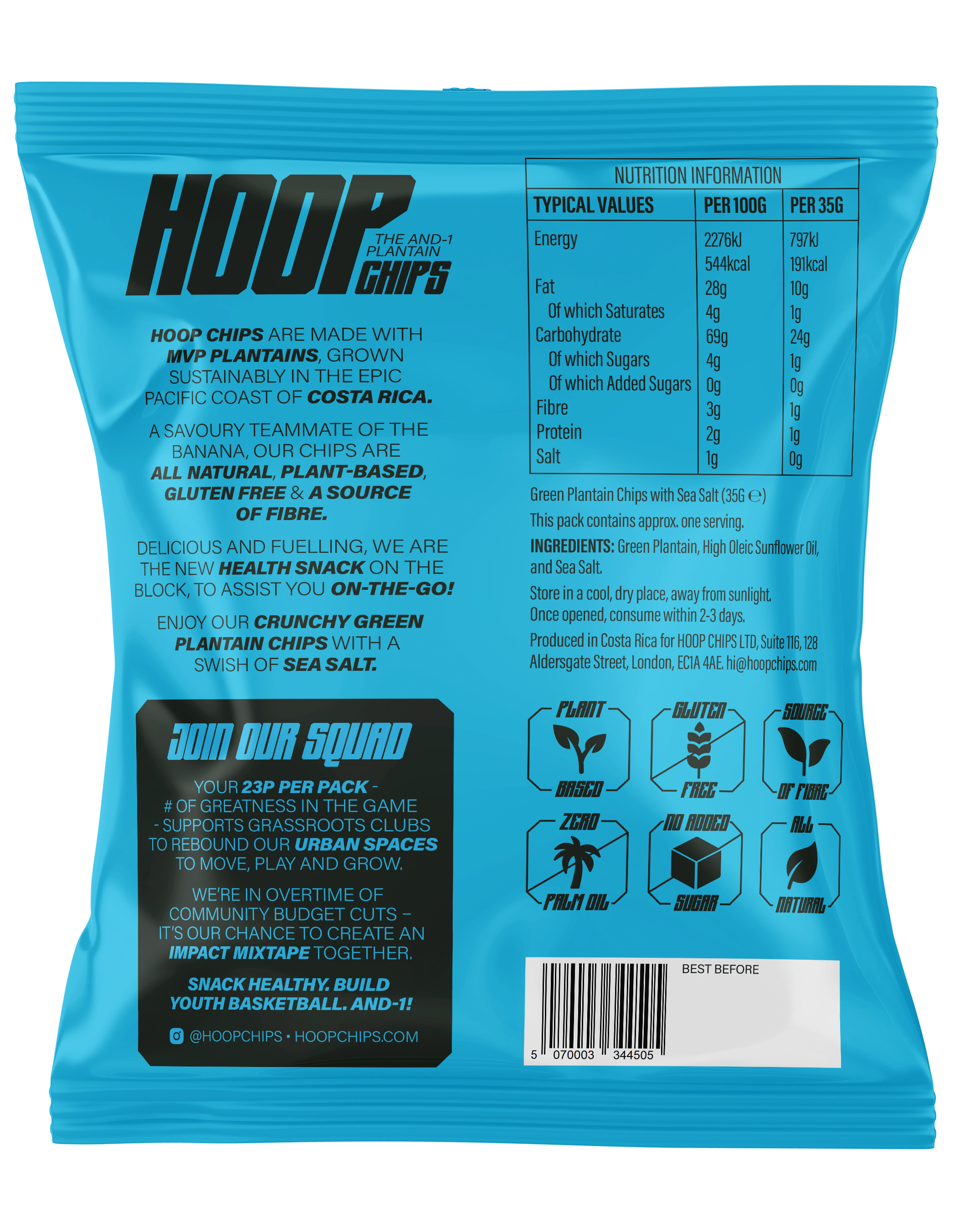 ENJOY OUR CRUNCHY GREEN PLANTAIN CHIPS WITH A SWISH OF SEA SALT.
